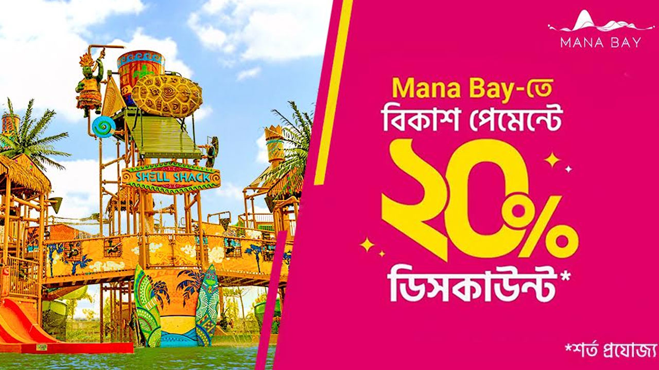 ওয়াটার পার্ক ‘ম্যানা বে’-তে ২০ শতাংশ ছাড় বিকাশ পেমেন্টে