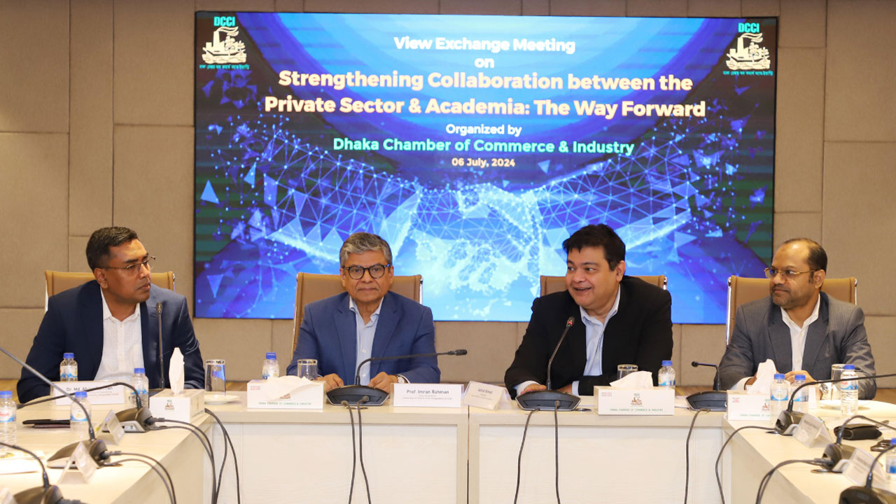 মতবিনিময় সভার স্বাগত বক্তব্যে ঢাকা চেম্বারের সভাপতি আশরাফ আহমেদ বলেন, দেশে প্রতিবছর প্রায় দুই মিলিয়ন তরুণ কর্মজীবনে প্রবেশ করেছে, যদিও আমরা কাঙ্ক্ষিত মাত্রায় কর্মসংস্থানের সুযোগ তৈরি করতে পারছি না। বিআইডিএস’র তথ্য মতে ৬৬ শতাংশ স্নাতক শিক্ষাজীবন সম্পন্নকারী তরুণ কর্মহীন। অপরদিকে বিশ্বব্যাংক বলছে, টেকনিক্যাল খাতে দক্ষ মানবসম্পদের অপ্রতুলতা প্রায় ৬৯ শতাংশ।