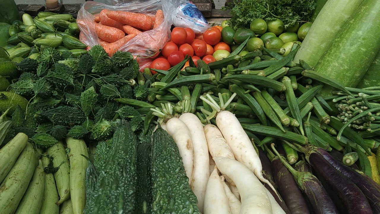 বাজার ঘুরে দেখা গেছে, আজকের সাপ্তাহিক ছুটির দিনের বাজারে প্রতি কেজি পটল বিক্রি হচ্ছে ৪০ টাকায়, পেঁপে ৩০ টাকা, মিস্টি কুমড়া ৪০ টাকা, কাঁচামরিচ ২২০ টাকা, ঢেঁড়স ৪০ টাকা, শসা ৬০ টাকা, ধুন্দল ৫০ টাকা, চিচিঙ্গা কেজি ৬০ টাকা, ঝিঙা ৬০ টাকা, লাউ প্রতি পিস ৫০ থেকে ৬০ টাকা, জালি প্রতি পিস ৬০ টাকা, কাঁকরোল প্রতি কেজি ৬০ টাকা, বেগুন ৮০ টাকায় বিক্রি হচ্ছে।