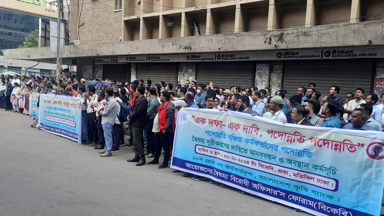 পদোন্নতির দাবিতে কৃষি ব্যাংক কর্মকর্তাদের বিক্ষোভ