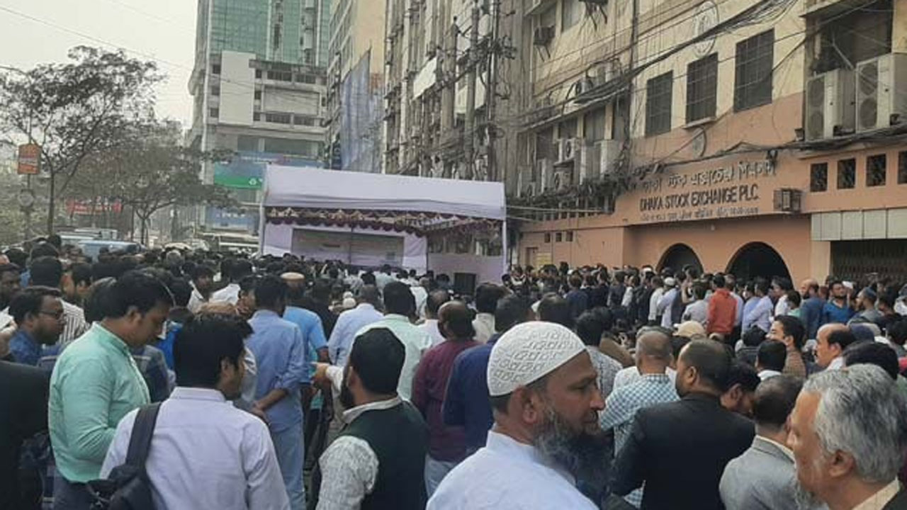 মতিঝিলে শেয়ারবাজারে বিনিয়োগকারীদের সমাবেশ