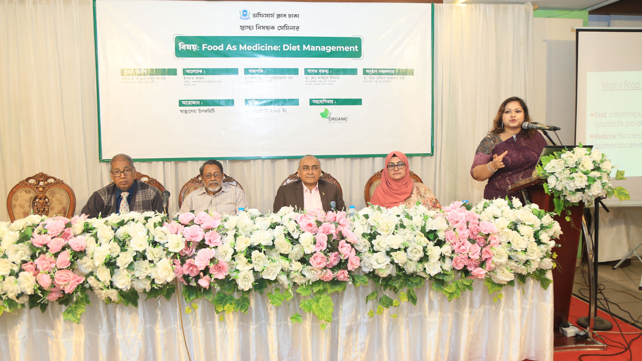 অর্গানিক নিউট্রিশন লিমিটেডের স্বার্বিক সহযোগিতায় ‘ফুড এজ মেডিসিন: ডায়েট ম্যানেজমেন্ট’ শিরোনামে অফিসার্স ক্লাব, ঢাকায় সেমিনার অনুষ্ঠিত হয়েছে।