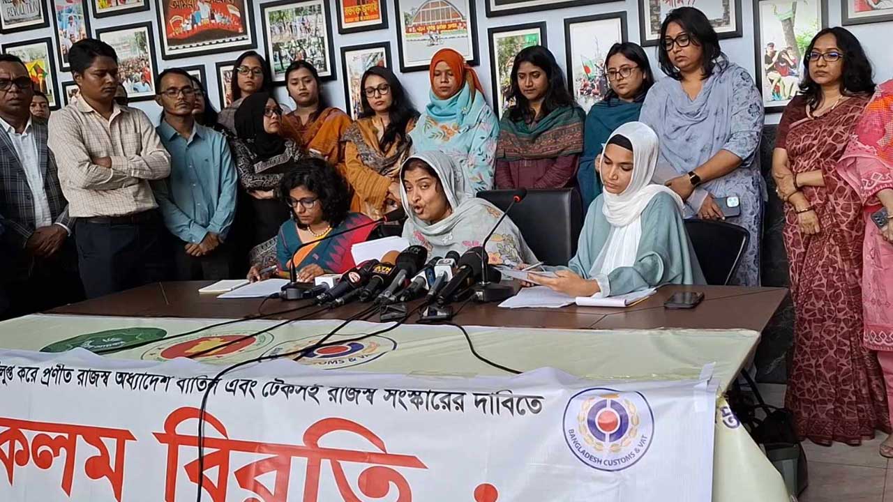 সংবাদ সম্মেলনে অতিরিক্ত কর কমিশনার সেহেলা সিদ্দিকী বলেন, এনবিআর বিলুপ্ত করে প্রণীত রাজস্ব অধ্যাদেশ বাতিল এবং টেকসই রাজস্ব সংস্কারের দাবিতে এনবিআর সংস্কার ঐক্য পরিষদের ডাকে রোববার সকাল ৯টা থেকে বিকেল ৩টা পর্যন্ত কাস্টমস, ভ্যাট ও ট্যাক্স বিভাগের বিভিন্ন দপ্তরে এবং এনবিআরে স্বতঃস্ফূর্তভাবে কলম বিরতি পালন করা হয়। এতে সব স্তরের কর্মকর্তা-কর্মচারীরা অংশগ্রহণ করেন। দেশের স্বার্থে রাজস্ব ব্যবস্থার যুগোপযোগী ও টেকসই সংস্কারের কেবল এনবিআরের সর্বস্তরের কর্মকর্তা-কর্মচারীদের দাবি নয়; বরং করদাতা সমাজ, ব্যবসায়ী সমাজ, সিভিল সোসাইটিসহ সব অংশীজনের দাবি। গুরুত্বপূর্ণ অংশীজনদের মতামত গ্রহণ না করে, সরকারের গঠিত সংস্কার কমিটির সুপারিশ প্রকাশ না করে এবং তা আলোচনা-পর্যালোচনার সুযোগ না দিয়ে, সবাইকে অন্ধকারে রেখে নজিরবিহীন দ্রুততা ও গোপনীয়তার সঙ্গে অধ্যাদেশ জারি করা হয়েছে। অংশীজনদের মতামত গ্রহণ না করে এক তরফাভাবে গৃহীত এই সংস্কারের উদ্দেশ্য ও কার্যকারিতা নিয়ে এরইমধ্যে রাজনৈতিক নেতারা ব্যবসায়ী মহল, পলিসি থিংক-ট্যাংকসহ বিভিন্ন মহল প্রশ্ন তুলেছেন।