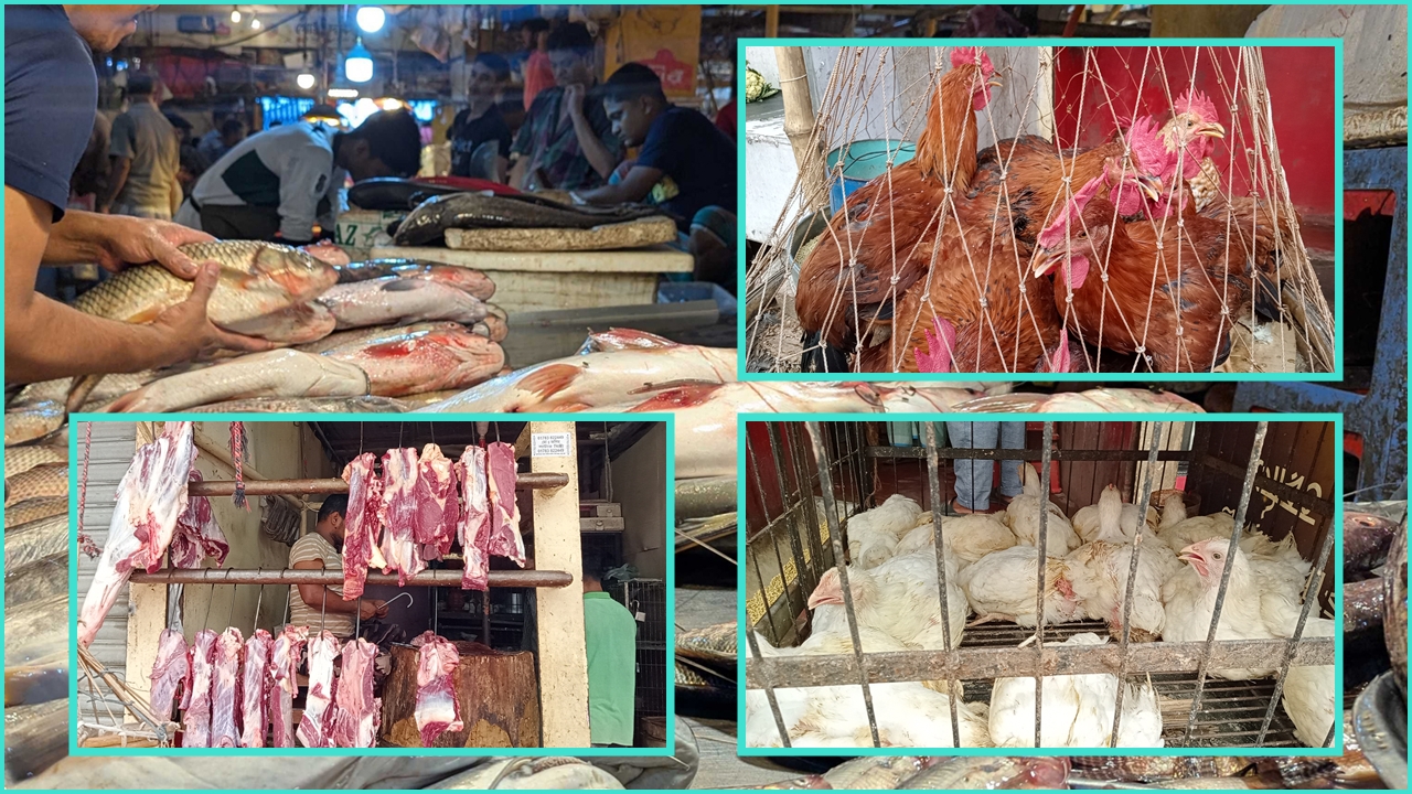 মাছের বাজারেও ভোক্তারা খুব একটা স্বস্তিতে নেই। আজকের বাজারে প্রতি কেজি রুই মাছ বিক্রি হচ্ছে ৩০০–৩৫০ টাকায়, কাতল ৩৫০–৪০০ টাকা, পাবদা ৪০০–৪৫০ টাকা, চিংড়ি ৬৫০–৮০০ টাকা, টেংরা ৬০০–৭০০ টাকা, শিং ৪০০–৪৫০ টাকা, কৈ ২৫০–২৮০ টাকা, তেলাপিয়া ২০০–২২০ টাকা ও পাঙাশ ১৮০–২০০ টাকায় বিক্রি হয়েছে। এছাড়া দেশি শিং ও কৈ বিক্রি হচ্ছে যথাক্রমে ১২০০ ও ১০০০ টাকায়।