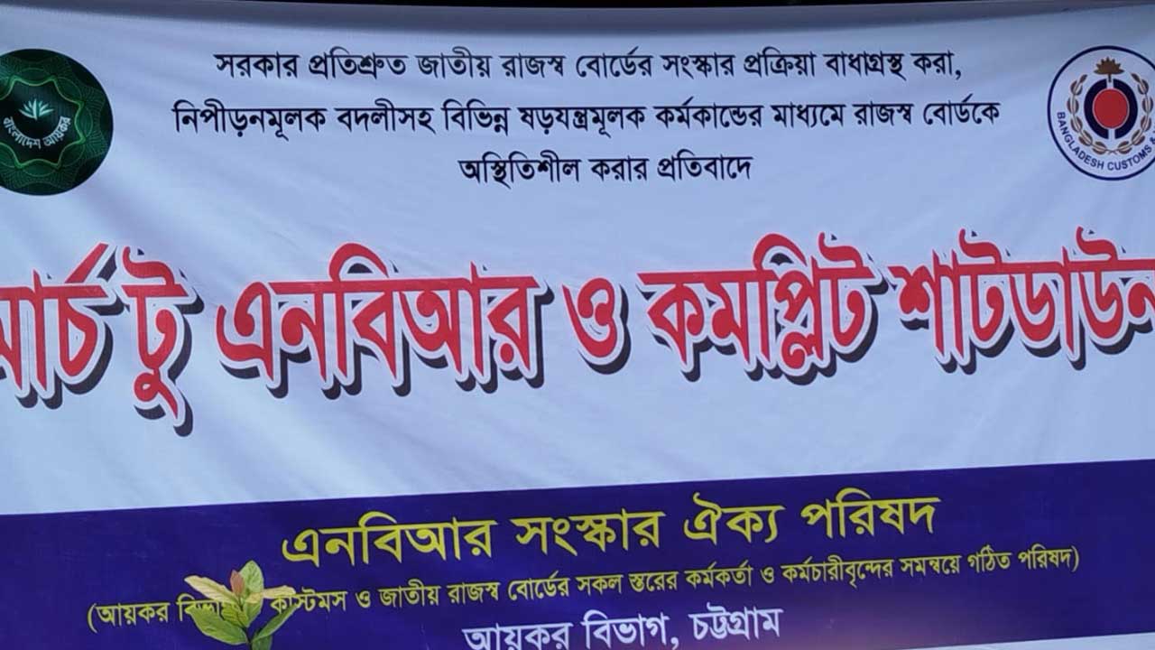 এনবিআর সংস্কার ঐক্য পরিষদ জানিয়েছে, শনিবার থেকে সারাদেশে ট্যাক্স, কাস্টমস ও ভ্যাট বিভাগের সব দপ্তরে কমপ্লিট শাটডাউন কার্যক্রম চালু থাকবে। তবে আন্তর্জাতিক যাত্রীসেবা এই কর্মসূচির আওতার বাইরে থাকবে। পাশাপাশি, সারাদেশের রাজস্ব দপ্তর থেকে ‘শান্তিপূর্ণ মার্চ টু এনবিআর’ কর্মসূচিও পালিত হচ্ছে।