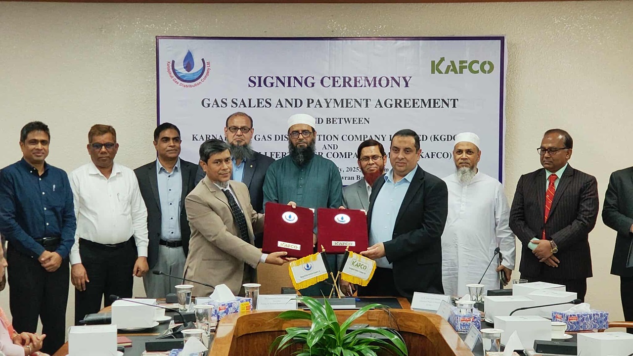 কর্ণফুলী গ্যাস ডিস্ট্রিবিউশন কোম্পানি লিমিটেড (কেজিডিসিএল) এবং কর্ণফুলী ফার্টিলাইজার কোম্পানি লিমিটেডের (কাফকো) মধ্যে একটি গ্যাস বিক্রয় চুক্তি স্বাক্ষরিত হয়েছে। এই চুক্তির মাধ্যমে কাফকোতে নিরবচ্ছিন্ন গ্যাস সরবরাহ নিশ্চিত করা হবে, যা দেশের কৃষি ও শিল্প উৎপাদন বৃদ্ধিতে সরাসরি অবদান রাখবে।