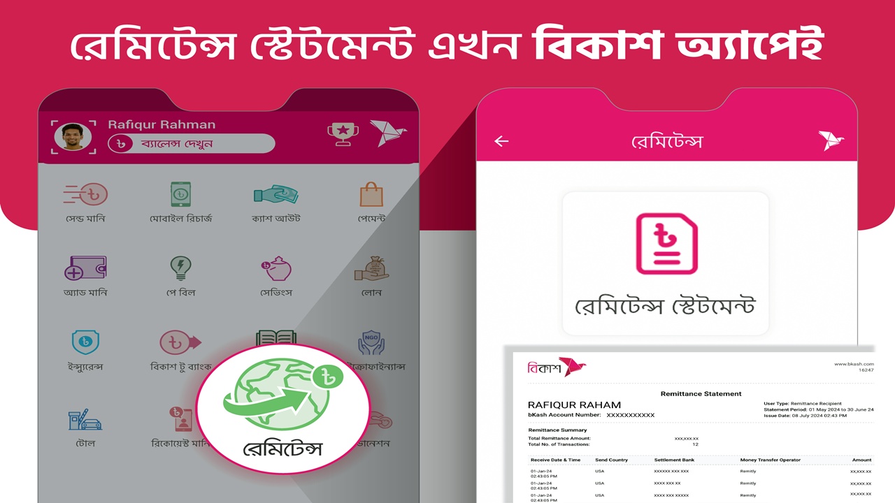 বিকাশ অ্যাপেই এখন মিলছে রেমিটেন্স স্টেটমেন্ট