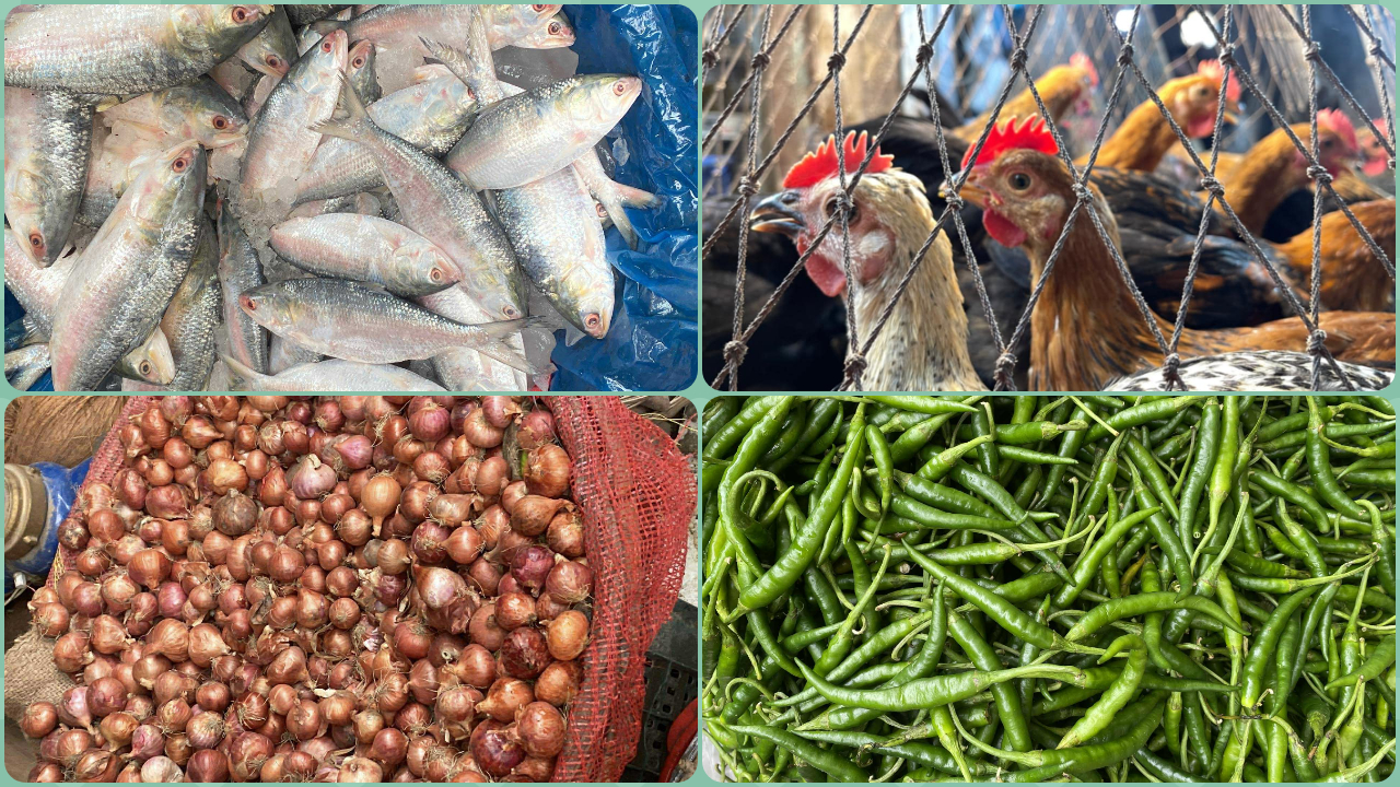 মুরগির বাজারেও দামের ঊর্ধ্বগতি। ব্রয়লার মুরগির কেজি ১৬০ টাকা, যা গত সপ্তাহে ১৪৫-১৫০ টাকার মধ্যে ছিল। পাকিস্তানি মুরগি ৩০০ টাকা এবং দেশি মুরগি বিক্রি হচ্ছে ৫৫০-৬০০ টাকায়। খাসির মাংস ১২০০ টাকা, আর গরুর মাংস ৭৫০ টাকা কেজি দরে বিক্রি হচ্ছে।