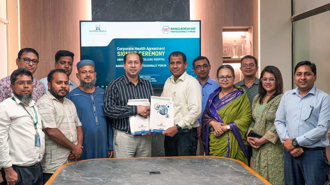 ইউনিভার্সেল মেডিকেল কলেজ হাসপাতাল ও বাংলাদেশ ভ্যাট প্রফেশনাল ফোরামের মধ্যে একটি দ্বিপাক্ষিক কর্পোরেট স্বাস্থ্য চুক্তি হয়েছে।