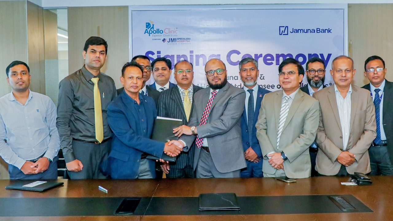 যমুনা ব্যাংকের উপ-ব্যবস্থাপনা পরিচালক ও সিবিও নূর মোহাম্মদ এবং অ্যাপোলো জেএমআই স্পেশালাইজড হাসপাতাল লিমিটেডের উপদেষ্টা মসিউর রহমান কামাল চুক্তিতে স্বাক্ষর করেন।