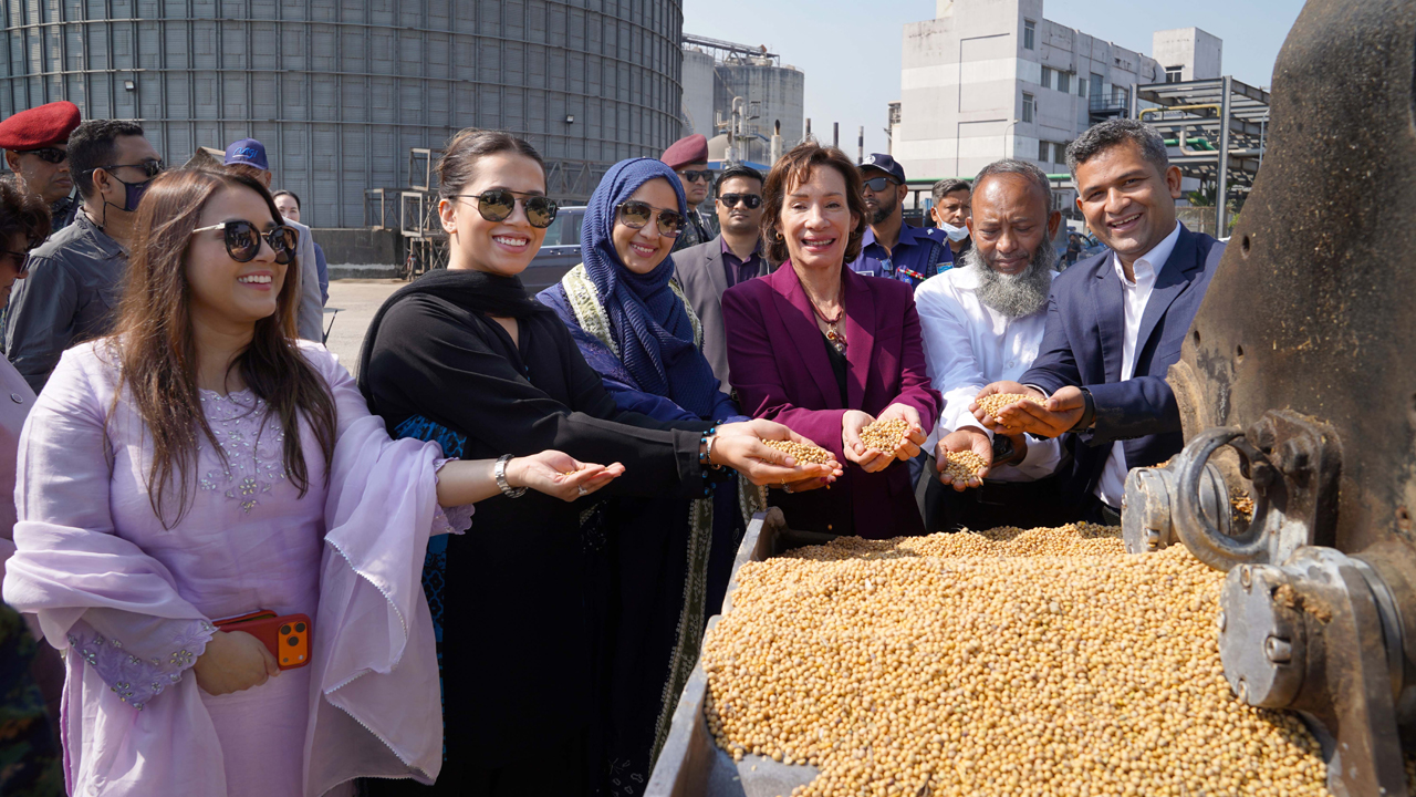 পরিদর্শনে মার্কিন রাষ্ট্রদূত সয়াবিন ক্রাশিং ফ্যাসিলিটির বিভিন্ন অংশ, বিশেষ করে মার্কিন যুক্তরাষ্ট্র থেকে আমদানিকৃত সয়াবিনের হ্যান্ডেলিং ও প্রসেসিং নিজ চোখে দেখেন। যা দুই দেশের মধ্যে কৃষি পণ্যের দ্বিপাক্ষিক বাণিজ্যকে আরও সুদৃঢ় করেছে।