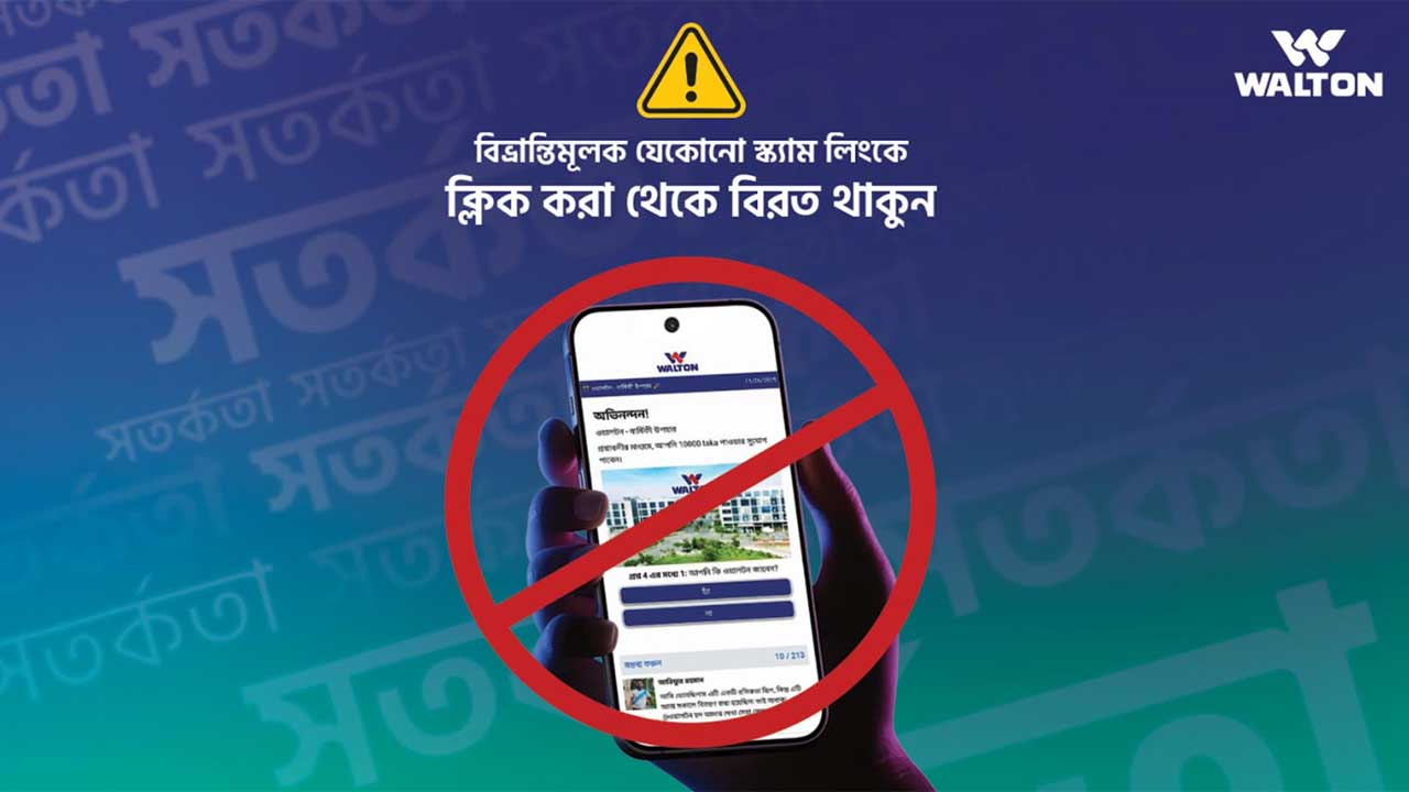 সম্প্রতি লক্ষ্য করা যাচ্ছে, সামাজিক যোগাযোগ মাধ্যমসহ বিভিন্ন চ্যানেলে ওয়ালটনের নাম ব্যবহার করে কিছু স্ক্যাম লিংকের মাধ্যমে একটি প্রতারক চক্র লোভনীয় উপহার ও মিথ্যা প্রতিশ্রুতি দিয়ে গ্রাহকদের গুরুত্বপূর্ণ তথ্য ও অর্থ হাতিয়ে নিচ্ছে।