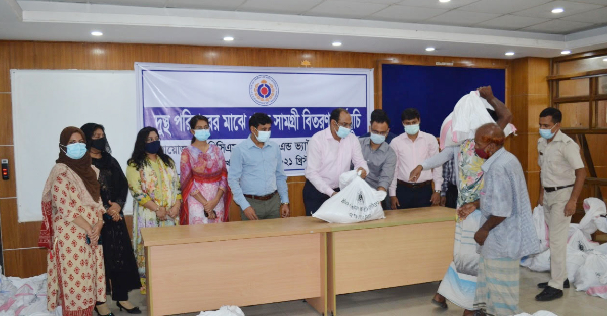 করোনা অতিমারিতে ক্ষতিগ্রস্ত দুঃস্থ ১০০ পরিবারের মধ্যে নিত্য প্রয়োজনীয় খাবার ও সুরক্ষা সামগ্রী বিতরণ করেছে বিসিএস (কাস্টমস অ্যান্ড ভ্যাট) অ্যাসোসিয়েশন।