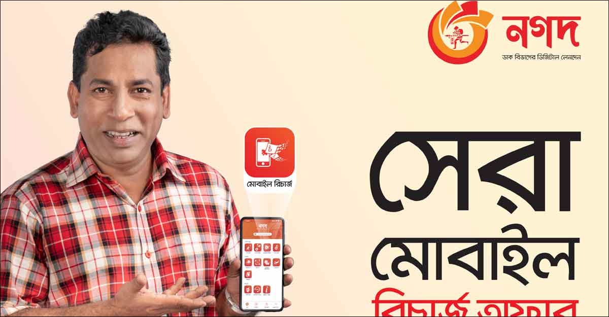 করোনা প্রতিরোধের কঠোর বিধিনিষেধের সময়ে ঝুঁকি নিয়ে ঘরের বাইরে না গিয়ে সাশ্রয়ী উপায়ে মোবাইল রিচার্জ করার সুযোগ করে দিয়েছে ডাক বিভাগের মোবাইল ফাইন্যান্সিয়াল সার্ভিস ‘নগদ’। এছাড়া ‘নগদ’-এর মাধ্যমে যেকোনো মোবাইল ফোনে রিচার্জে রয়েছে ক্যাশব্যাকসহ আকর্ষণীয় ডিসকাউন্ট অফার।