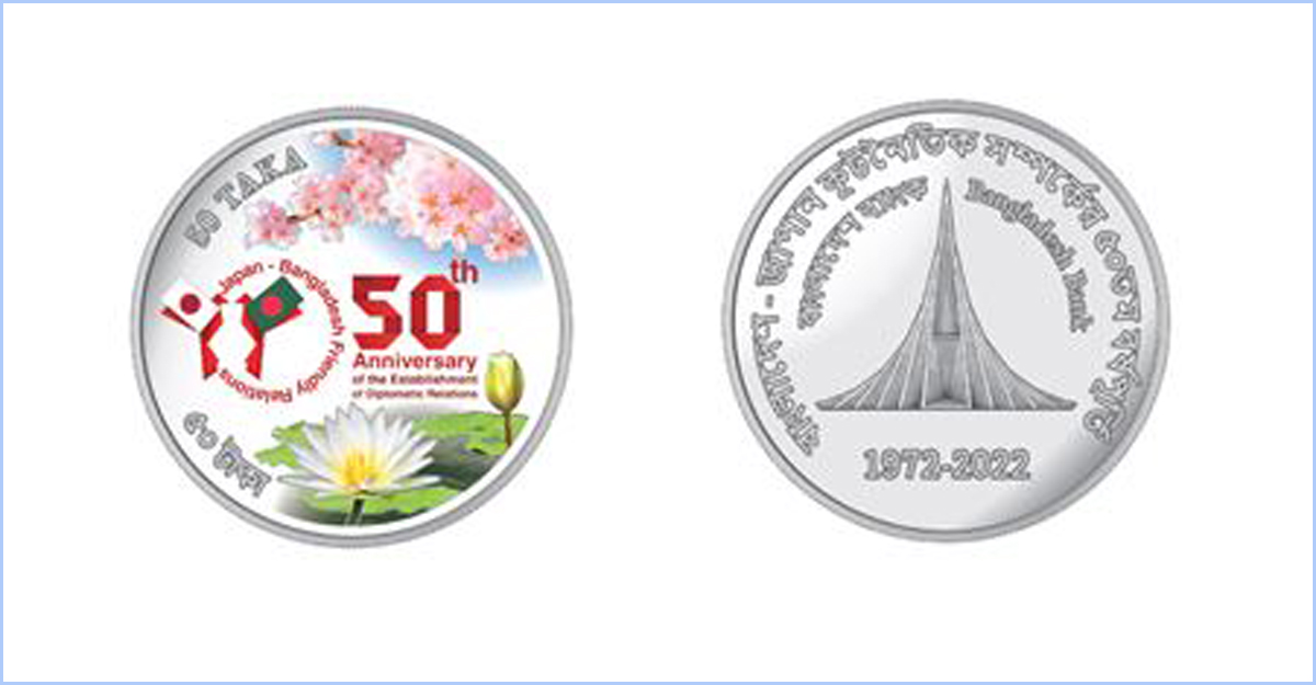 কেন্দ্রীয় ব্যাংক জানায়, আগামী ১০ ফেব্রুয়ারি বাংলাদেশ ও জাপানের কূটনৈতিক সম্পর্কের ৫০ বছর পূর্তি উদ্যাপিত হবে। এ উপলক্ষে বাংলাদেশ ব্যাংক ও জাপান মিন্ট-এর যৌথ উদ্যোগে একটি ৫০ টাকা মূল্যমান স্মারক রৌপ্য মুদ্রা মুদ্রণ করা হয়েছে। নতুন এ স্মারক মুদ্রা ১০ ফেব্রুয়ারি বাংলাদেশ ব্যাংক প্রচলন করবে। প্রচলনে দেয়ার পর স্মারক রৌপ্য মুদ্রাটি বাংলাদেশ ব্যাংকের মতিঝিল অফিস, মিরপুরে অবস্থিত বাংলাদেশ ব্যাংক টাকা জাদুঘর এবং জাপান মিন্টতে বিক্রয় করা হবে।