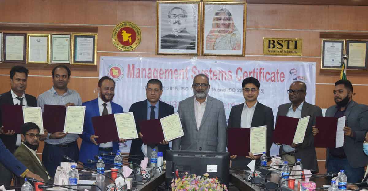আন্তর্জাতিকমানের ব্যবস্থাপনা নিশ্চিত করায় ৭টি প্রতিষ্ঠানকে আইএসও সনদ দিয়েছে পণ্যের মান নিয়ন্ত্রক সংস্থা বাংলাদেশ স্ট্যান্ডার্ডস অ্যান্ড টেস্টিং ইনস্টিটিউশন (বিএসটিআই)।