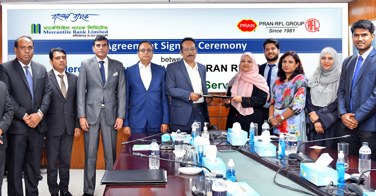 মার্কেন্টাইল ব্যাংকের ব্যবস্থাপনা পরিচালক ও প্রধান নির্বাহী মো. কামরুল ইসলাম চৌধুরী এবং প্রাণ-আরএফএল গ্রুপের পরিচালক উজমা চৌধুরী চুক্তিতে সই করেন।