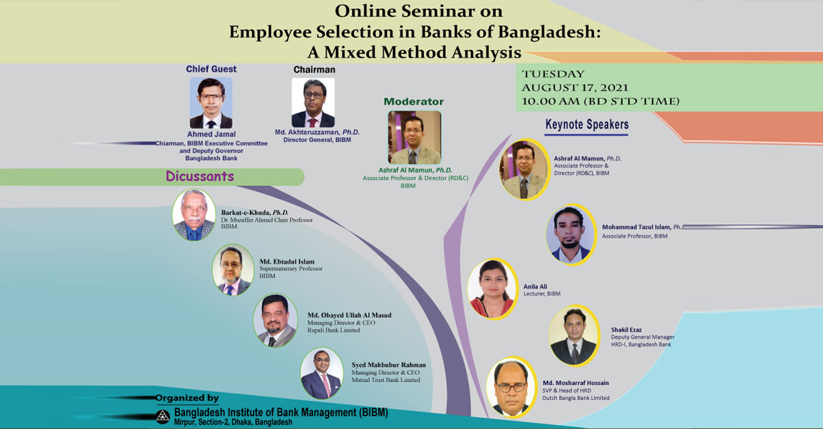 মঙ্গলবার (১৭ আগস্ট) ‘বাংলাদেশ ইনস্টিটিউট অব ব্যাংক ম্যানেজমেন্টে (বিআইবিএম) এমপ্লয়ি সিলেকশন ইন ব্যাংকস অব বাংলাদেশ : এ মিক্সড মেথড অ্যানালাইসিস’ শীর্ষক এক অনলাইন সেমিনারে এ তথ্য জানানো হয়।