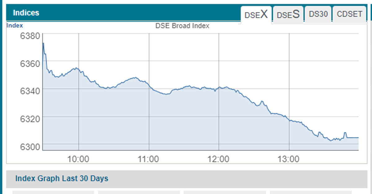 এদিন দেশের প্রধান পুঁজিবাজার ঢাকা স্টক এক্সচেঞ্জের (ডিএসই) প্রধান সূচক কমেছে ৪৯ পয়েন্ট। অপর পুঁজিবাজার চট্টগ্রাম স্টক এক্সচেঞ্জের (সিএসই) সূচক কমেছে ১২৬ পয়েন্ট।