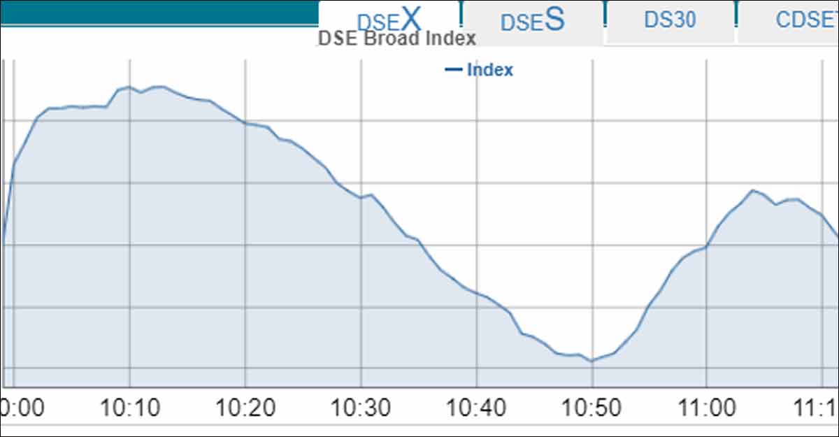 ডিএসইর তথ্য মতে, সকাল ১০টায় সূচকের ঊর্ধ্বমুখী প্রবণতায় লেনদেন শুরু হয়। তবে তা বেশিক্ষণ স্থায়ী হয়নি। লেনদেনের মাত্র ১৫ মিনিটের মাথায় ব্যাংক-বিমা, প্রকৌশলসহ বেশির ভাগ খাতের শেয়ার বিক্রির হিড়িক পড়ে। তাতে শুরু হয় সূচক পতন। এর ফলে লেনদেনের প্রথম ঘণ্টায় ডিএসইর প্রধান সূচক ডিএসইএক্স ২ দশমিক ২২ পয়েন্ট কমে ৭ হাজার ১৩৮ পয়েন্টে দাঁড়িয়েছে। প্রধান সূচকের পাশাপাশি ডিএসইর অন্য দুই সূচকের মধ্যে ডিএসইএস দশমিক ১৬ পয়েন্ট কমেছে। তবে ডিএস-৩০ সূচক আগের দিনের চেয়ে দশমিক ৪৯ পয়েন্ট বেড়েছে।