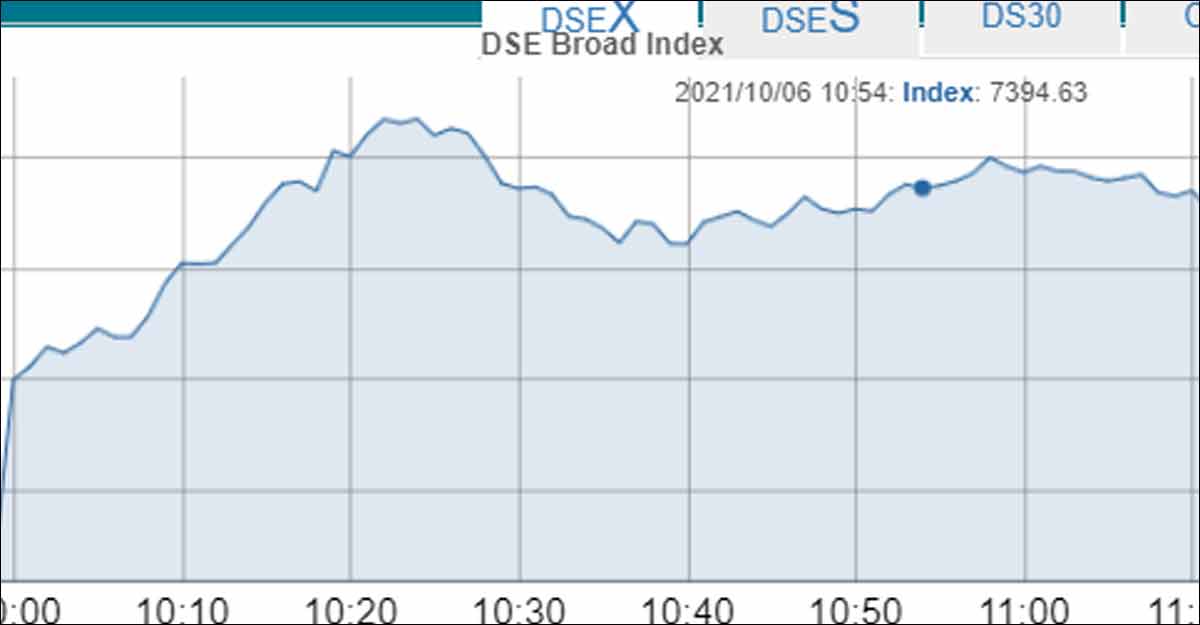 এ সময়ে ডিএসইর প্রধান সূচক ডিএসইএক্স ৬৭ দশমিক ১৫ পয়েন্ট বেড়ে ৭ হাজার ৩৯৮ পয়েন্টে দাঁড়িয়েছে। প্রধান সূচকের পাশাপাশি ডিএসইর অন্য দুই সূচকের মধ্যে ডিএসইএস সূচক বেড়েছে ৯ দশমিক ৫৫ পয়েন্ট এবং ডিএস-৩০ সূচক আগের দিনের চেয়ে ১৯ দশমিক ১৫ পয়েন্ট বেড়েছে।
