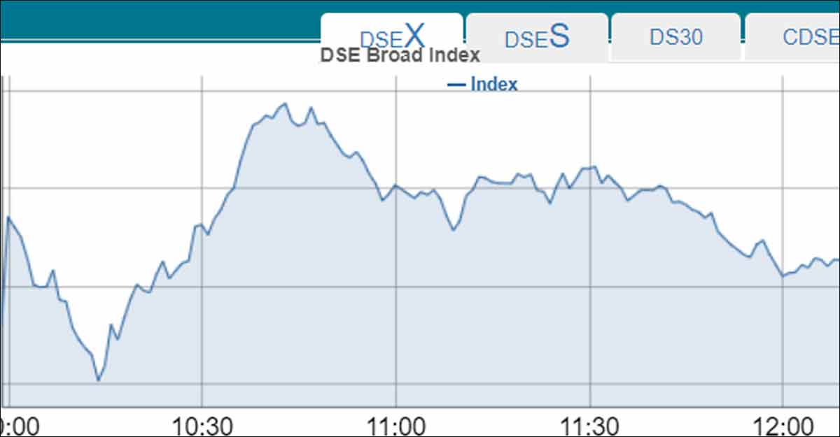 দুপুর ১২টায় এই রিপোর্ট লেখা পর্যন্ত দেশের প্রধান পুঁজিবাজার ডিএসইর প্রধান সূচক আগের দিনের চেয়ে বেড়েছে ১১ পয়েন্ট। অপর পুঁজিবাজার চট্টগ্রাম স্টক এক্সচেঞ্জের (সিএসই) প্রধান সূচক বেড়েছে ৫২ পয়েন্ট।