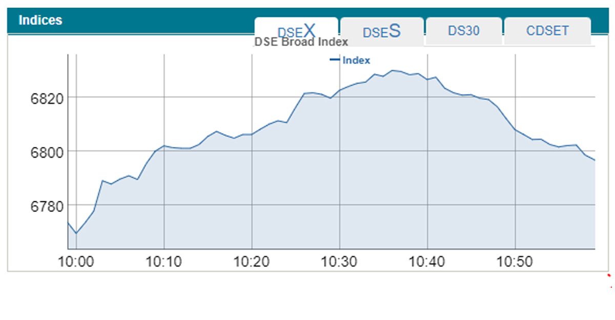 বেশিরভাগ কোম্পানির শেয়ারের দাম বাড়ায় ডিএসইর প্রধান সূচক ডিএসইএক্স ২৫ পয়েন্ট বেড়ে ৬ হাজার ৮০৯ পয়েন্টে দাঁড়িয়েছে। প্রধান সূচকের পাশাপাশি ডিএসইর অন্য দুই সূচকও বেড়েছে। এর মধ্যে ডিএসইএস সূচক বেড়েছে ৪ পয়েন্ট এবং ডিএস-৩০ সূচক আগের দিনের চেয়ে ১ পয়েন্ট বেড়েছে।