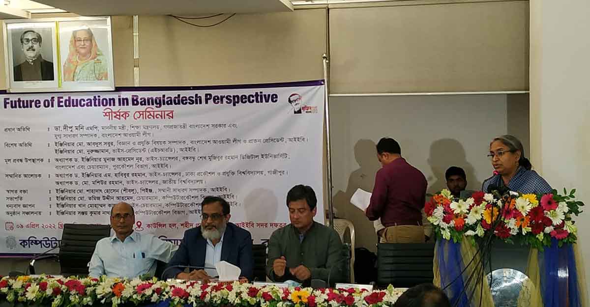 শনিবার (৯ এপ্রিল) বিকেলে ইঞ্জিনিয়ার্স ইনস্টিটিউশন বাংলাদেশ (আইইবি) কম্পিউটার কৌশল বিভাগের সেমিনার কক্ষে 'ফিউচার অব এডুকেশন ইন বাংলাদেশ পারস্পেক্টিভ' শীর্ষক সেমিনার শেষে সাংবাদিকদের প্রশ্নের জবাবে তিনি এ কথা বলেন।