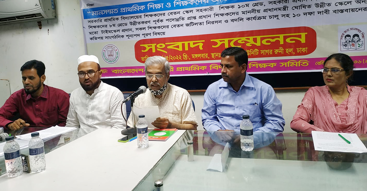 বাংলাদেশ সরকারি প্রাথমিক বিদ্যালয় শিক্ষক সমিতির সভাপতি ওয়েছ আহমদ চৌধুরীর সভাপতিত্বে এবং সাংগঠনিক সম্পাদক রফিকুর রহমানের সঞ্চালনায় সংবাদ সম্মেলনে প্রধান অতিথি ছিলেন সংগঠনের প্রধান উপদেষ্টা আব্দুল আউয়াল তালুকদার। বিশেষ অতিথি ছিলেন উপদেষ্টা আবুল হোসেন ও আব্দুল হান্নান।