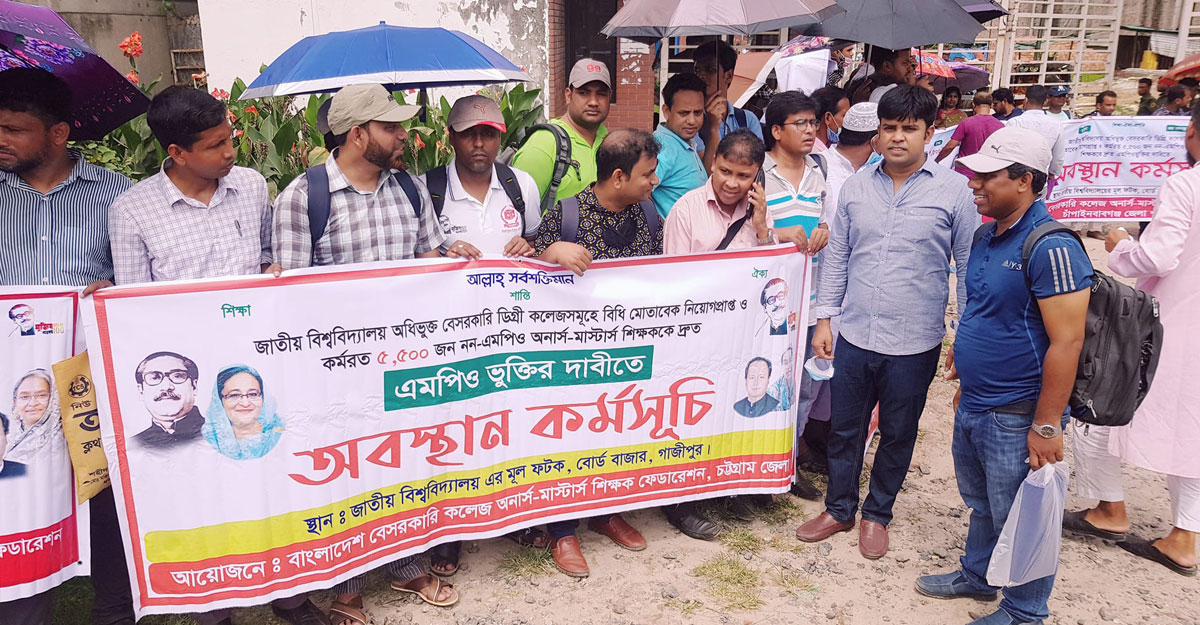 এমপিওভুক্তির দাবিতে জাতীয় বিশ্ববিদ্যালয়ের সামনে অবস্থান ধর্মঘট