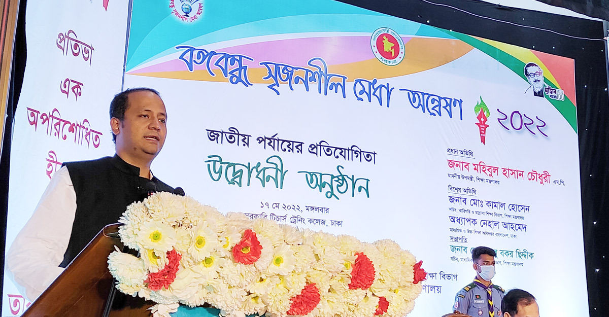 মঙ্গলবার (১৭ মে) রাজধানীর সরকারি টিচার্স ট্রেনিং কলেজে ‘বঙ্গবন্ধু সৃজনশীল মেধা অন্বেষণ-২০২২’ এর জাতীয় পর্যায়ের প্রতিযোগিতার উদ্বোধন অনুষ্ঠানে প্রধান অতিথির বক্তব্যে তিনি এসব কথা বলেন।