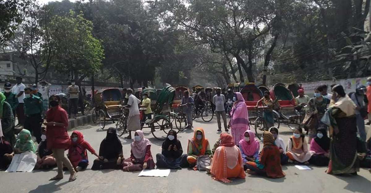 পরীক্ষা নেওয়ার দাবিতে সড়ক অবরোধ করেছেন কলেজ অব হোম ইকোনমিক্সের শিক্ষার্থীরা