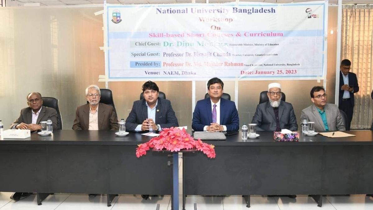 জাতীয় বিশ্ববিদ্যালয়ের দক্ষতাভিত্তিক ১৯টি শর্ট কোর্স প্রবর্তন নিয়ে ‘স্কিল বেইজড শর্ট কোর্সেস অ্যান্ড কারিকুলাম’ শীর্ষক দিনব্যাপী ওয়ার্কশপ অনুষ্ঠিত হয়েছে।