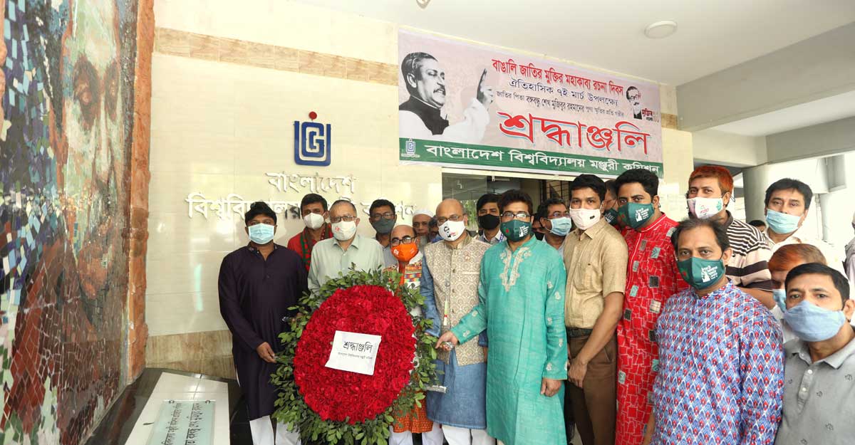 বঙ্গবন্ধুর প্রতিকৃতিতে ইউজিসির শ্রদ্ধা