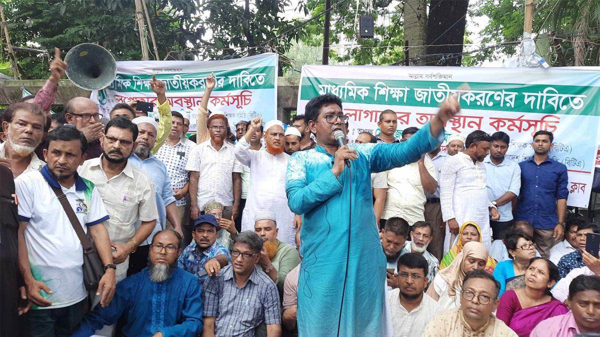 জাতীয় প্রেসক্লাবের সামনে লাগাতার অবস্থান কর্মসূচিতে এই ঘোষণা দেন বাংলাদেশ শিক্ষক সমিতির সাধারণ সম্পাদক শেখ কাওছার আহমেদ।