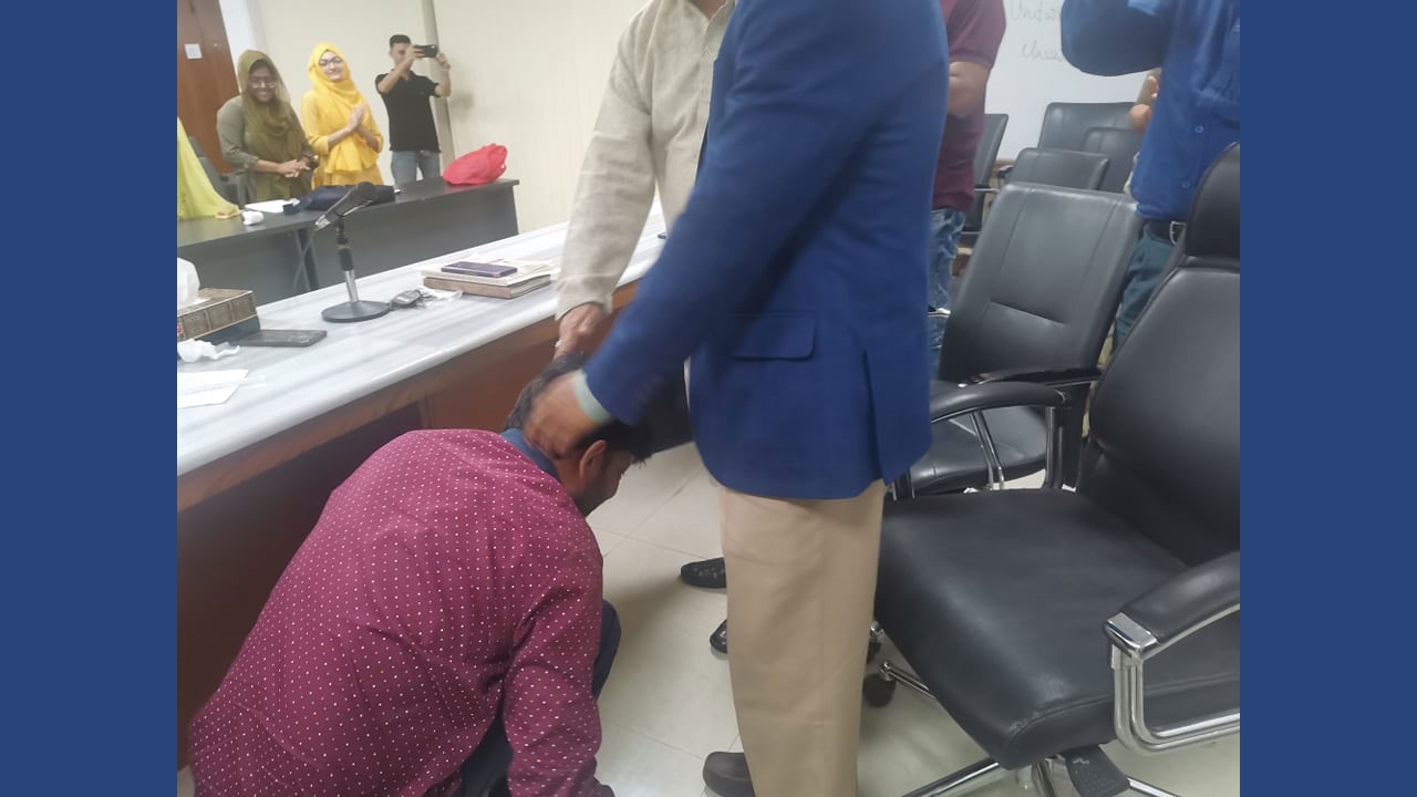 শিক্ষক দিবসে নজির ঢাবি শিক্ষকের, পা ধুইয়ে দিলেন তার দুই শিক্ষকের
