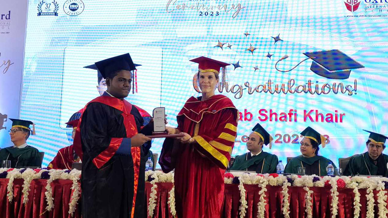 অক্সফোর্ড ইন্টারন্যাশনাল স্কুলের অধ্যক্ষ ড. এম নূরুন নবী, ডিরেক্টর তুবা আরবার ও প্রধান কার্যনির্বাহী মোহাম্মদ আবু কায়েস জাহাদি শিক্ষার্থীদের হাতে সনদপত্র তুলে দেন।