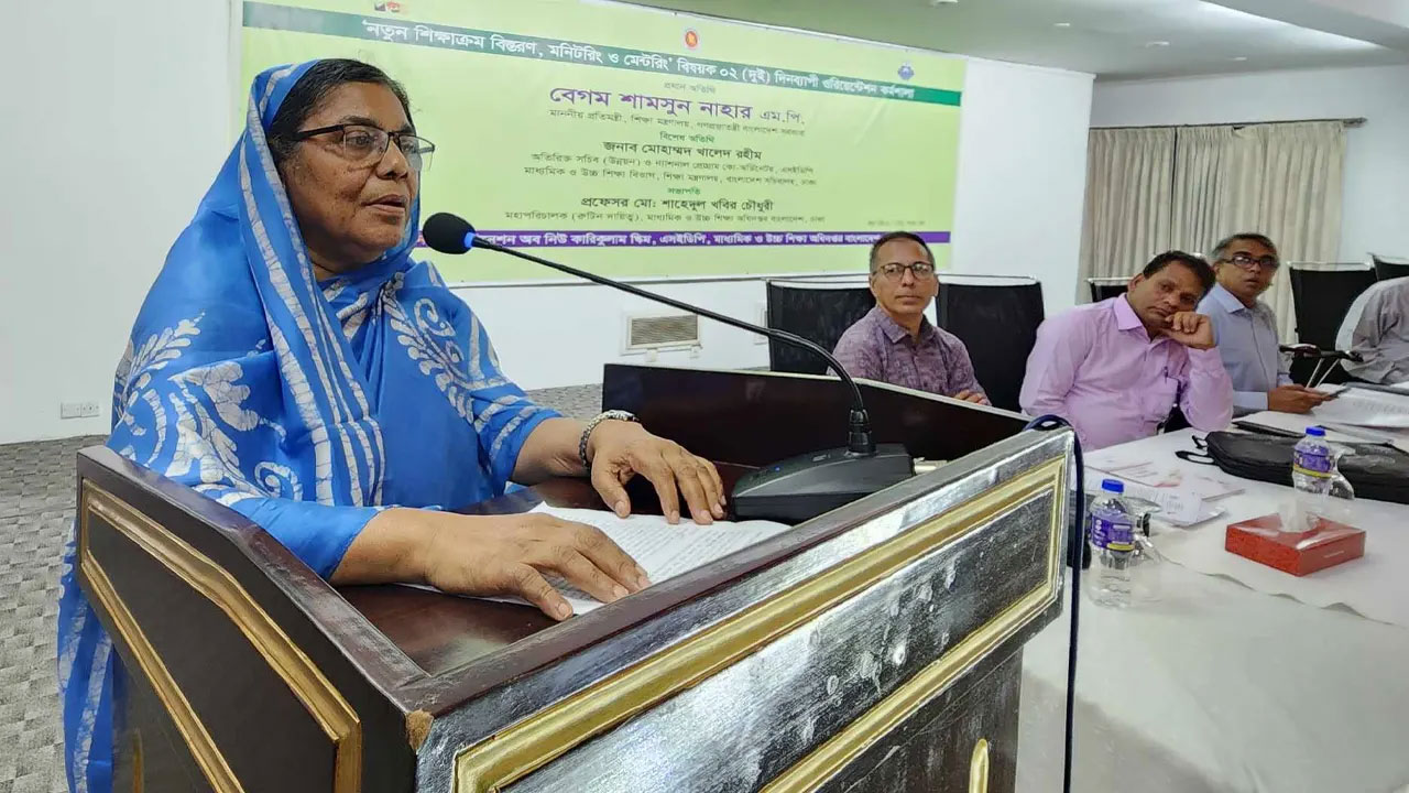 শামসুন নাহার চাঁপা বলেন, নতুন কারিকুলাম প্রনয়ণ ও বাস্তবায়নে সংশ্লিষ্ট যারা আছেন, তাদের অনুরোধ করব... মূল্যায়ন নিয়ে জনমনে যে-প্রশ্ন রয়েছে, শিক্ষার্থীর উচ্চশিক্ষা নিয়ে অভিভাবকদের মনে যে উদ্বেগ রযেছে, আমাদের সবাইকে এই নতুন ভাবনার সম্পৃক্ত করা প্রয়োজন। এগুলো দ্রুততম সময়ের মধ্যে নিরসন করা জরুরি।