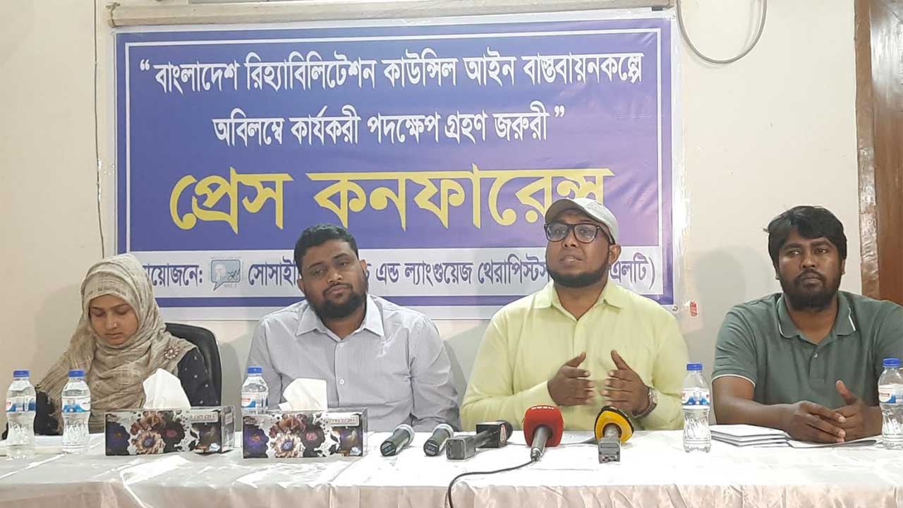 দেশের স্বাস্থ্যসেবায় গুরুত্বপূর্ণ ভূমিকা পালন করলেও স্পিচ ও ল্যাঙ্গুয়েজ থেরাপিস্টরা নানাবিধ বৈষম্যের শিকার বলে জানিয়েছে সোসাইটি অব স্পিচ অ্যান্ড ল্যাঙ্গুয়েজ থেরাপিস্ট (এসএসএলটি)। এ অবস্থায় 'বাংলাদেশ রিহ্যাবিলিটেশন কাউন্সিল' আইন বাস্তবায়রে অবিলম্বে কার্যকরী পদক্ষেপ গ্রহণসহ তিন দফা দাবি জানিয়েছেন সংগঠনের নেতারা।