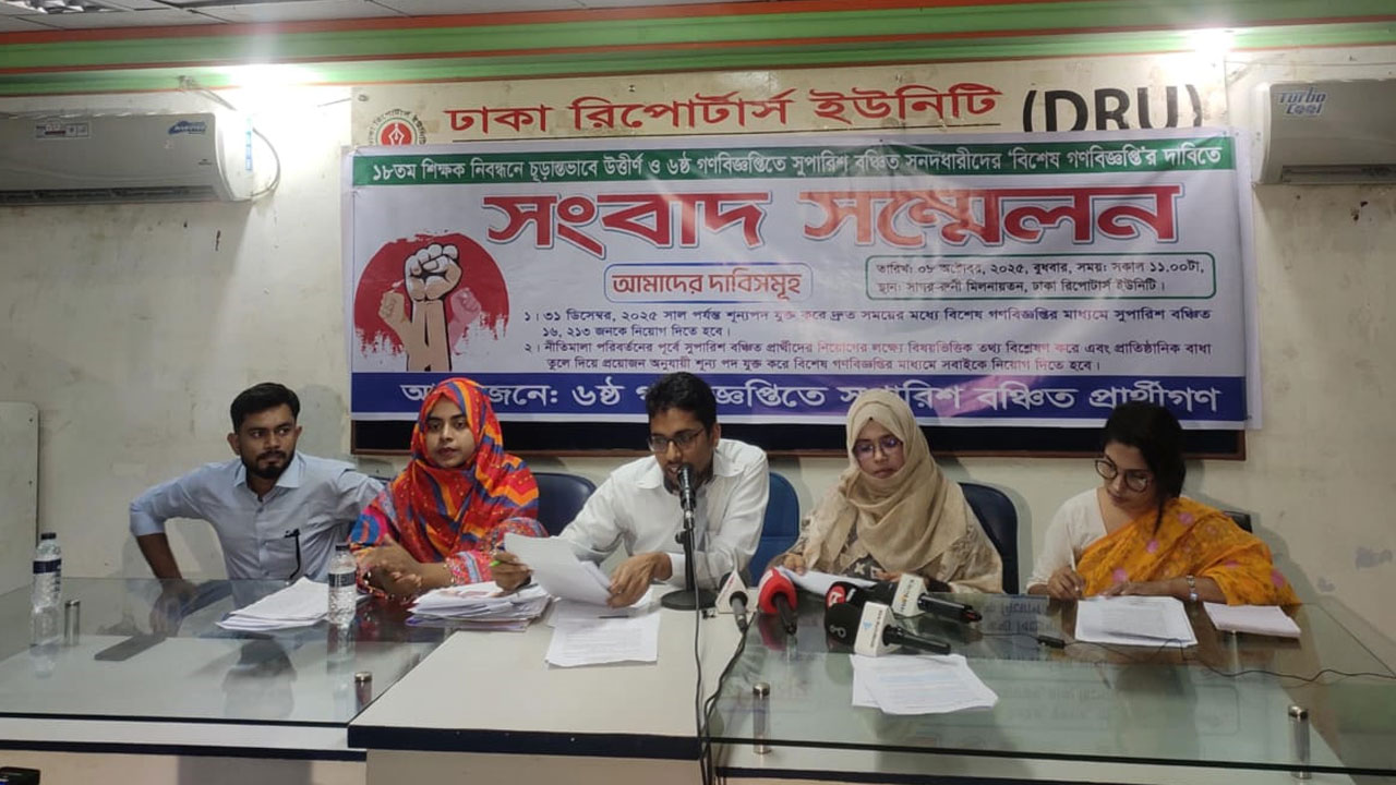 সংবাদ সম্মেলনে জানানো হয়, ষষ্ঠ গণবিজ্ঞপ্তিতে সদ্য সুপারিশপ্রাপ্ত অনেক প্রার্থী বিভিন্ন কারণে যোগদান করেননি বা করবেন না। এতে বেসরকারি শিক্ষাপ্রতিষ্ঠানে বিদ্যমান তীব্র শিক্ষক সংকট আরও বাড়বে। তাই ওই অযোগদানকৃত পদগুলো যুক্ত করে দ্রুত বিশেষ গণবিজ্ঞপ্তি প্রকাশ করা সম্ভব ও জরুরি বলে দাবি জানান তারা।