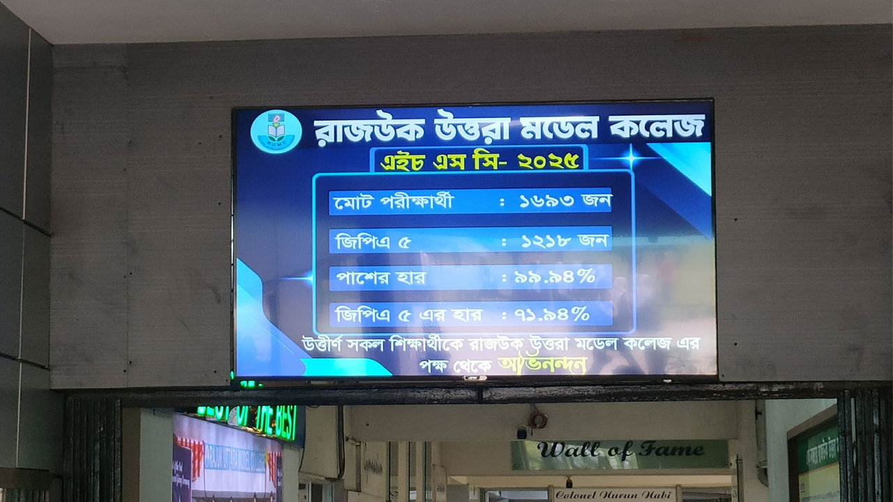 প্রতিষ্ঠানটি জানিয়েছে, চলতি বছর প্রতিষ্ঠানটি থেকে পরীক্ষায় অংশ নেন ১ হাজার ৬৯৩ জন। এরমধ্যে মোট জিপিএ-৫ পেয়েছেন ১ হাজার ২১৮ জন।