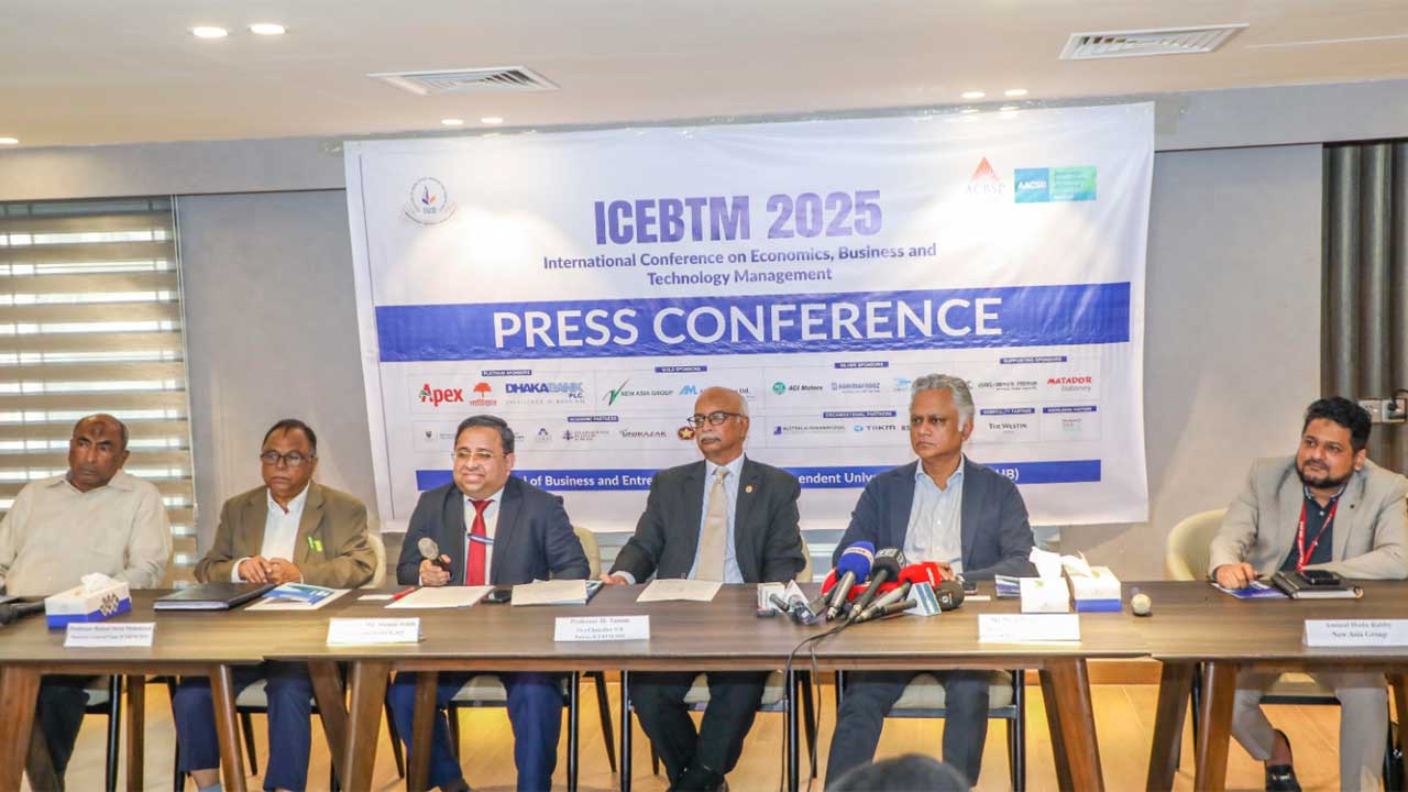 সংবাদ সম্মেলনে আইসিইবিটিএম ২০২৫-এর জেনারেল চেয়ার ও আইইউবির ম্যানেজমেন্ট বিভাগের প্রধান অধ্যাপক ড. মো. মামুন হাবিব সম্মেলনের উদ্দেশ্য, বিভিন্ন সেশন ও অংশগ্রহণকারীদের বিষয়ে বিস্তারিত তুলে ধরেন। তিনি জানান, অর্থনীতি, ব্যবসা ও প্রযুক্তি ব্যবস্থাপনায় নতুন ভাবনা ও গবেষণার ফল বিনিময়ের জন্য এই আয়োজন একটি কার্যকরী আন্তর্জাতিক মঞ্চ হিসেবে কাজ করবে।