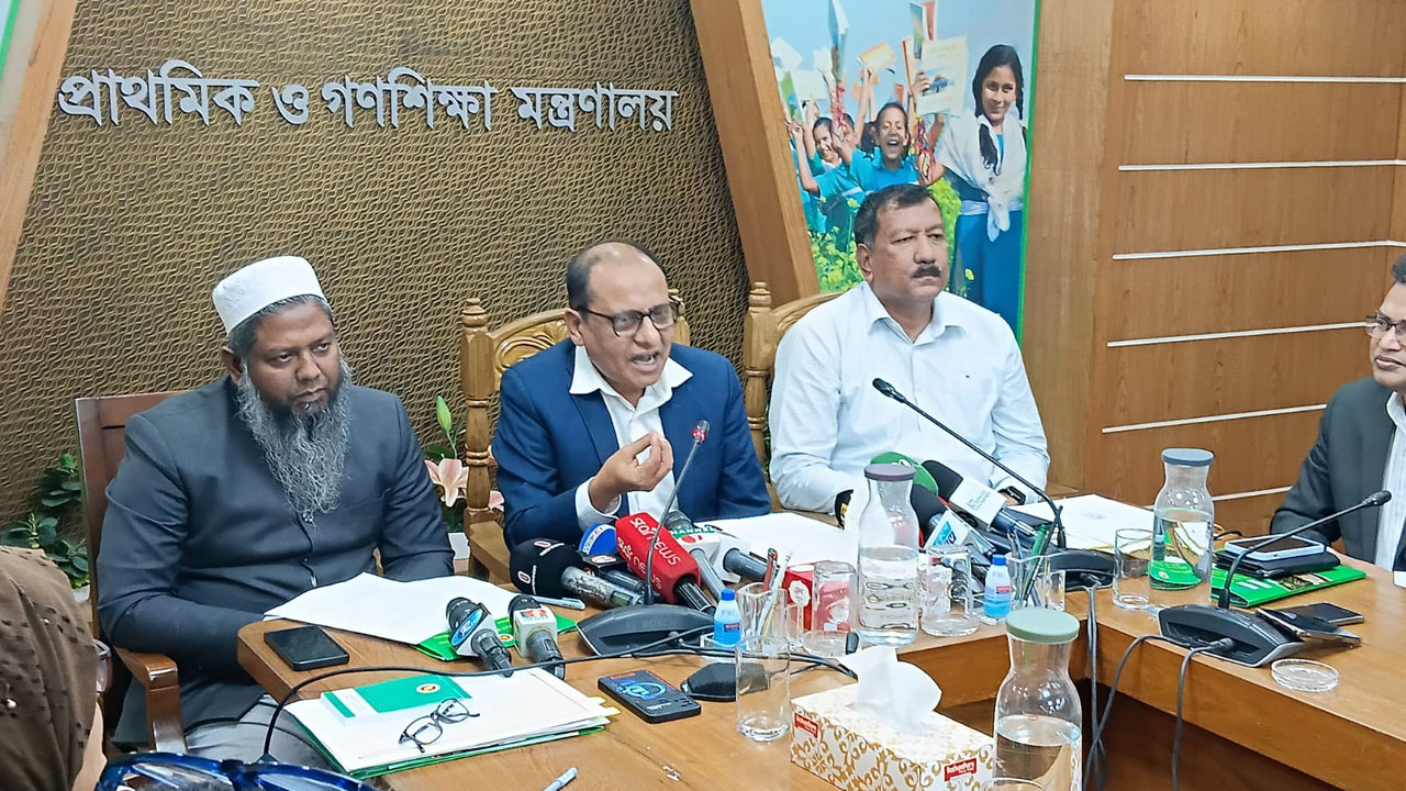 মঙ্গলবার (১৮ নভেম্বর) প্রাথমিক ও গণশিক্ষা মন্ত্রণালয়ের সম্মেলন কক্ষে আয়োজিত এক সংবাদ সম্মেলনে এসব কথা জানান প্রাথমিক ও গণশিক্ষা মন্ত্রণালয়ের উপদেষ্টা অধ্যাপক ডা. বিধান রঞ্জন রায় পোদ্দার।