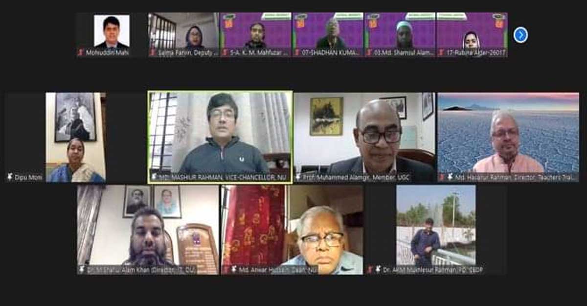 বুধবার (২ ফেব্রুয়ারি) অনলাইন প্লাটফর্ম জুম অ্যাপের মাধ্যমে শিক্ষক প্রশিক্ষণ কার্যক্রম শুরু হয়। এতে সভাপতিত্ব করেন জাতীয় বিশ্ববিদ্যালয়ের উপাচার্য অধ্যাপক ড. মো. মশিউর রহমান। প্রধান অতিথি হিসেবে প্রশিক্ষণ কার্যক্রমে যুক্ত ছিলেন শিক্ষামন্ত্রী ডা. দীপু মনি।