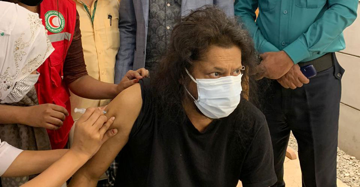 আজ বুধবার (১০ ফেব্রুয়ারি) দুপুর দেড়টার দিকে বঙ্গবন্ধু শেখ মুজিব মেডিক্যাল বিশ্ববিদ্যালয়ে (বিএসএমএমইউ) টিকার প্রথম ডোজ নেন এই রকস্টার।