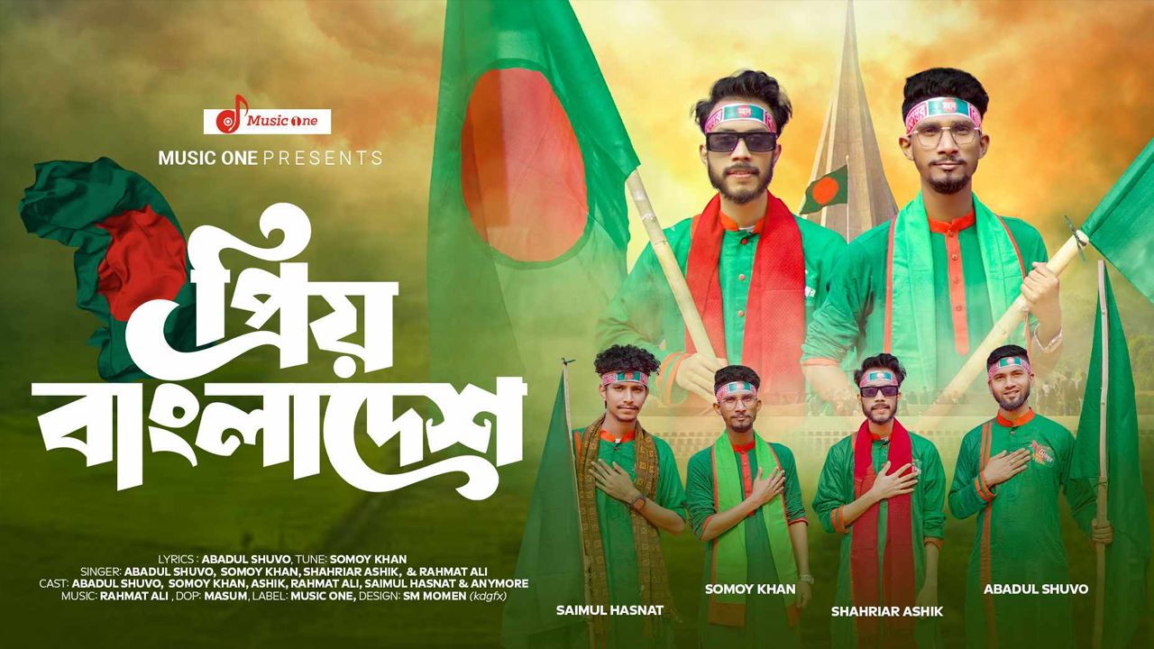 প্রযোজনা প্রতিষ্ঠান মিউজিক ওয়ানের ব্যানার থেকে প্রকাশ পেতে যাচ্ছে নতুন গান ‘প্রিয় বাংলাদেশ’। গানটির সুন্দর কথামালা সাজিয়েছেন গীতিকার এবাদুল শুভ।