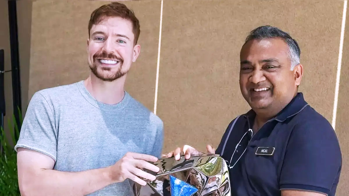 সাধারণত ইউটিউব কনটেন্ট ক্রিয়েটরদের ১ লাখ, ১০ লাখ, বা ১ কোটি সাবস্ক্রাইবার পার হলে সিলভার, গোল্ড বা ডায়মন্ড প্লে বাটন প্রদান করা হয়। কিন্তু মিস্টার বিস্টের ৪০০ মিলিয়নের রেকর্ডের জন্য বানানো হয়েছে একেবারে আলাদা ডিজাইনের একটি পুরস্কার—ধাতব ফ্রেমে ঘেরা এবং মাঝে বসানো হয়েছে উজ্জ্বল নীল রঙের রত্নখচিত অংশ।