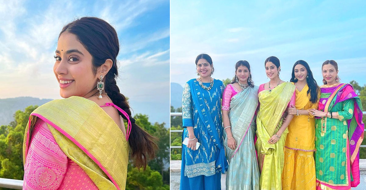 ৫ মার্চ যেখানে মেটালিক ড্রেসে হট অ্যান্ড বোল্ড লুকে আগুন ঝড়িয়েছিলেন নেট দুনিয়ায়, সেখানে জন্মদিনে একেবারে ট্রাডিশনাল লুকে নেটিজেনদের মন ভুলিয়েছেন কাপুর কন্যা। জন্মদিনের আগেই অন্ধপ্রদেশের উদ্দেশ্যে রওনা দিয়েছিলেন নায়িকা। সেখানে তিরুপতি বালাজির মন্দিরে যাওয়ার জন্য পড়েছিলেন দক্ষিণী সিল্কের শাড়ি। সঙ্গে কনট্রাস্ট করা গোলাপি রঙের ব্লাউজ। শাড়ির সঙ্গে ম্যাচ করে পরেছিলেন গহনা।