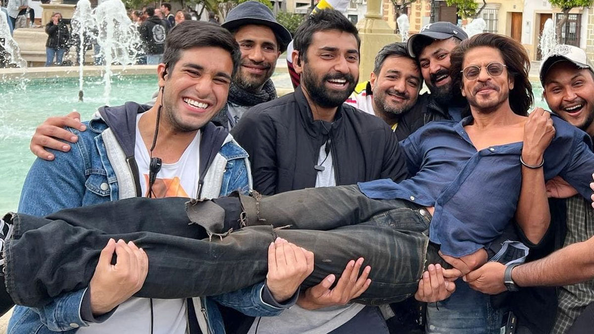 ছবিতে আরও ছিলেন পরিচালক সিদ্ধার্থ আনন্দ, শ্রে মাথুর, নিশীথ ভাটিয়া, অমিত মিশ্র প্রমুখ। বাইরের লোকেশনে ক্যামেরায় পোজ দেওয়ার সময় খানিক মজা করেই তারা বলিউড বাদশাকে কোলে তুলে নেন।
