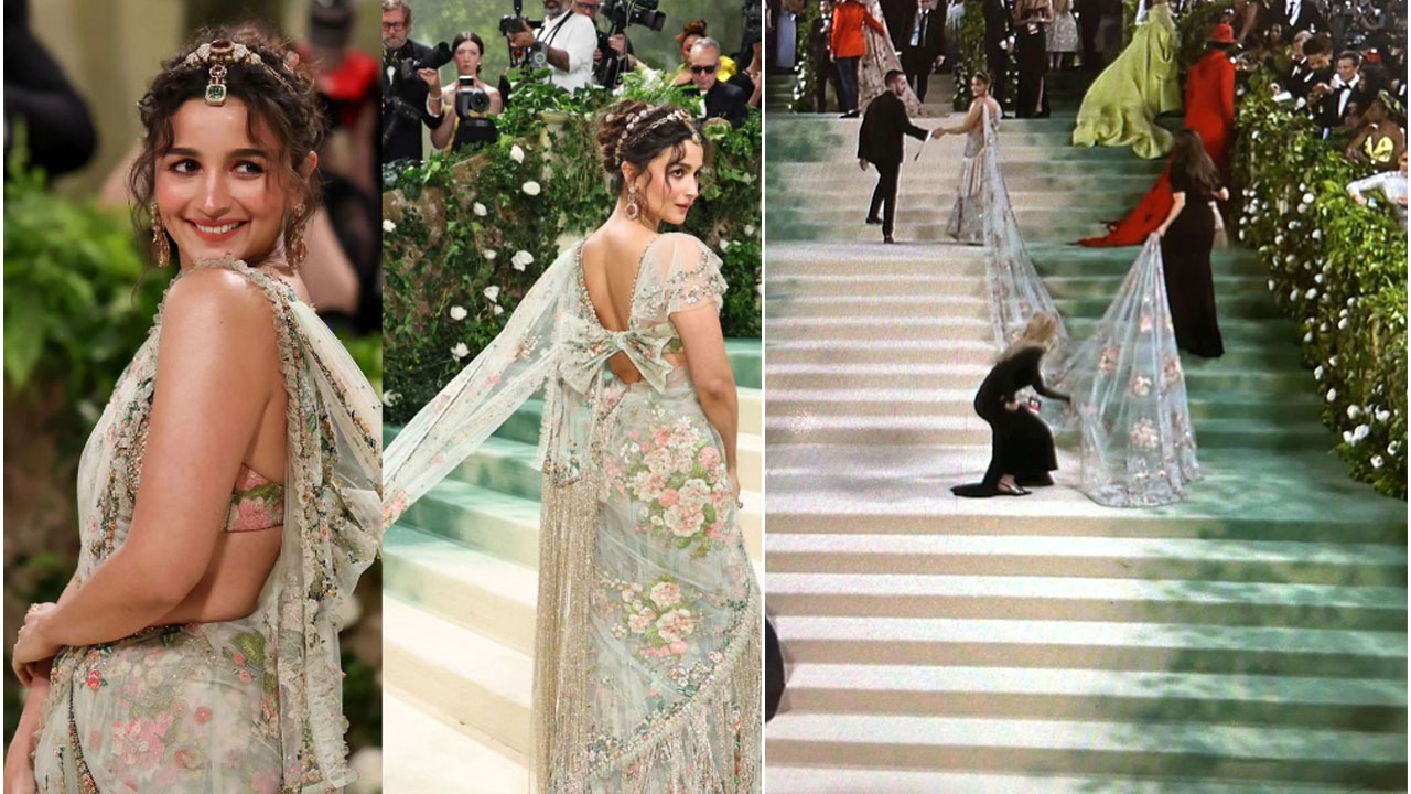 মেট গালা ২০২৪-এ আলিয়া ভাটের ট্র্যাডিশনাল লুক ব্যাপক প্রশংসিত হয়েছে ভক্তদের কাছে। নিউ ইয়র্কের তারকাখচিত রেড কার্পেটে পরীর মতো লাগছিল তাকে। ভারতীয় ফ্যাশন ডিজাইনার সব্যসাচী মুখোপাধ্যায়ের হাতে তৈরি এমব্রয়ডারি করা শাড়িতে নিজেকে অনন্য করে তুলেছিলেন তিনি। শাড়ীটির আঁচলের দৈর্ঘ্য ২৩ ফুট।